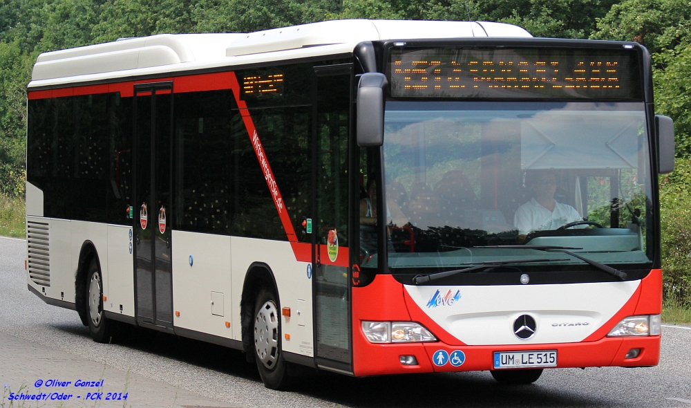 Mercedes-Benz O530 Citaro LE-Ü, Wagennummer 515, der Uckermärkischen Verkehrsgesellschaft mbH, 2014 beim PCK in Schwedt/Oder.