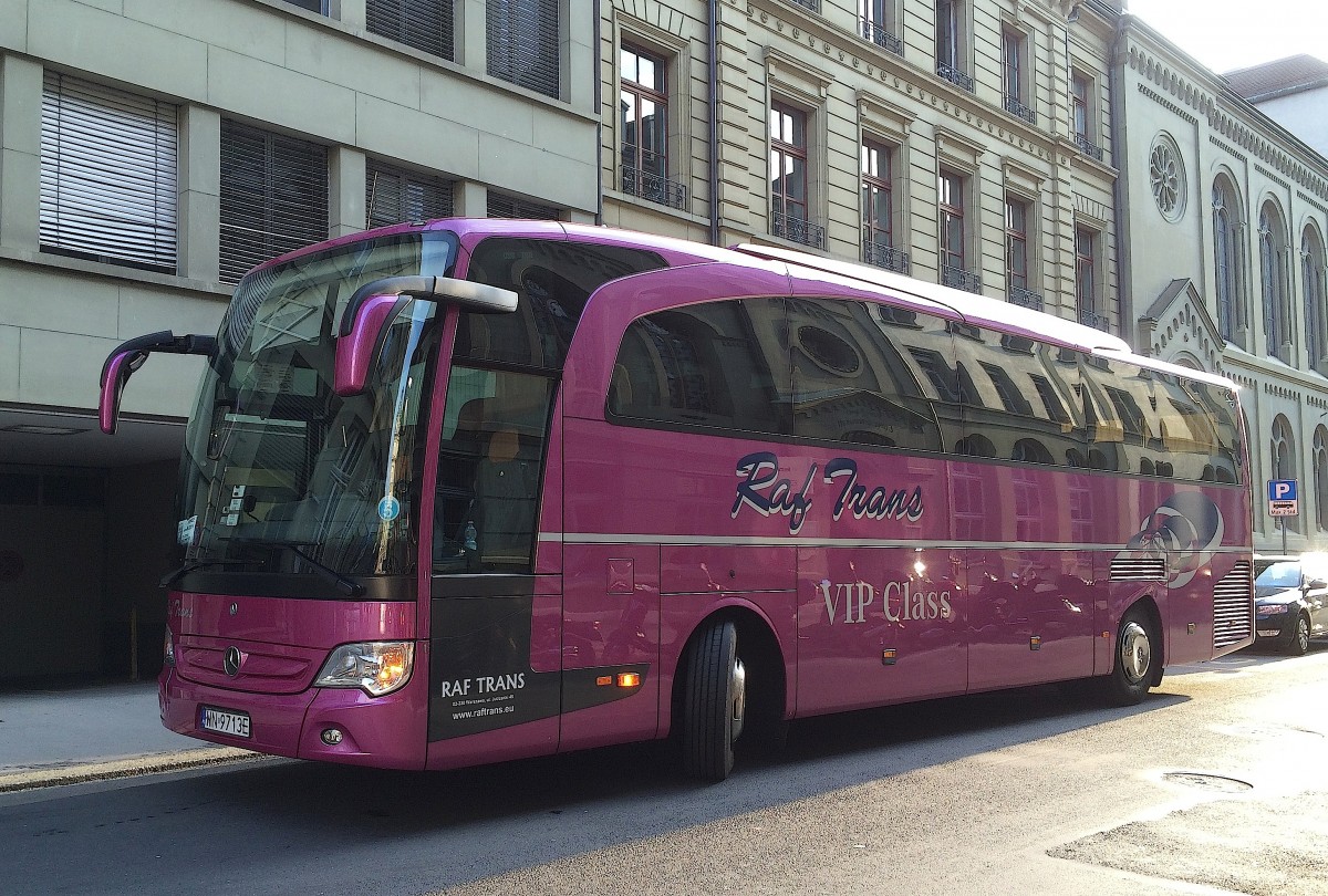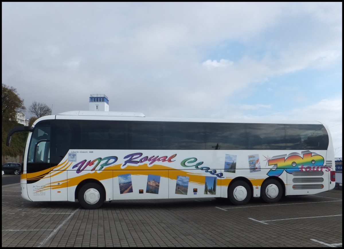 Mercedes Travego von Eberle aus Deutschland im Stadthafen Sassnitz am 16.08.2015