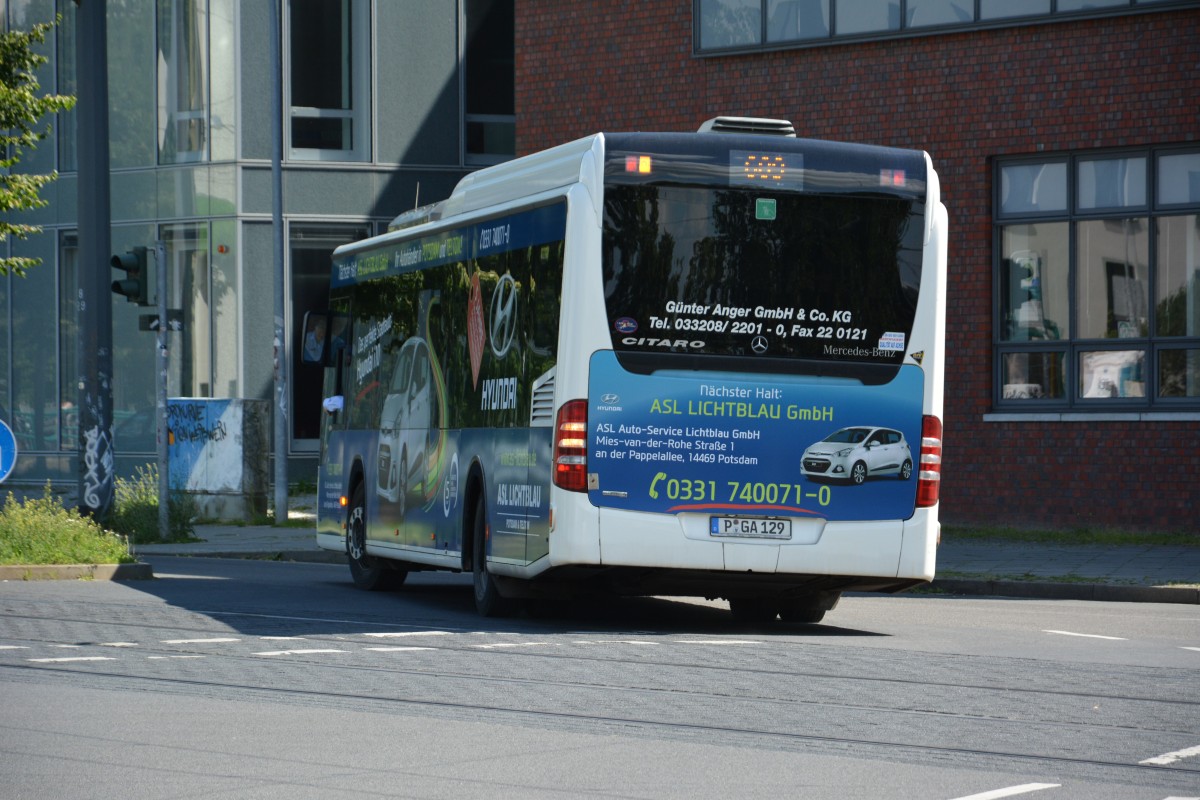 P-GA 129 fährt am 25.07.2015 auf der Linie 609. Aufgenommen wurde ein Mercedes Benz Citaro Low Entry / Potsdam Campus Fachhochschule.