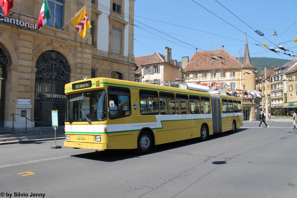 transN Nr. 114 ''Argovie'' (NAW/Hess BGT 5-25) am 3.8.2015 in Neuchâtel, Place Pury