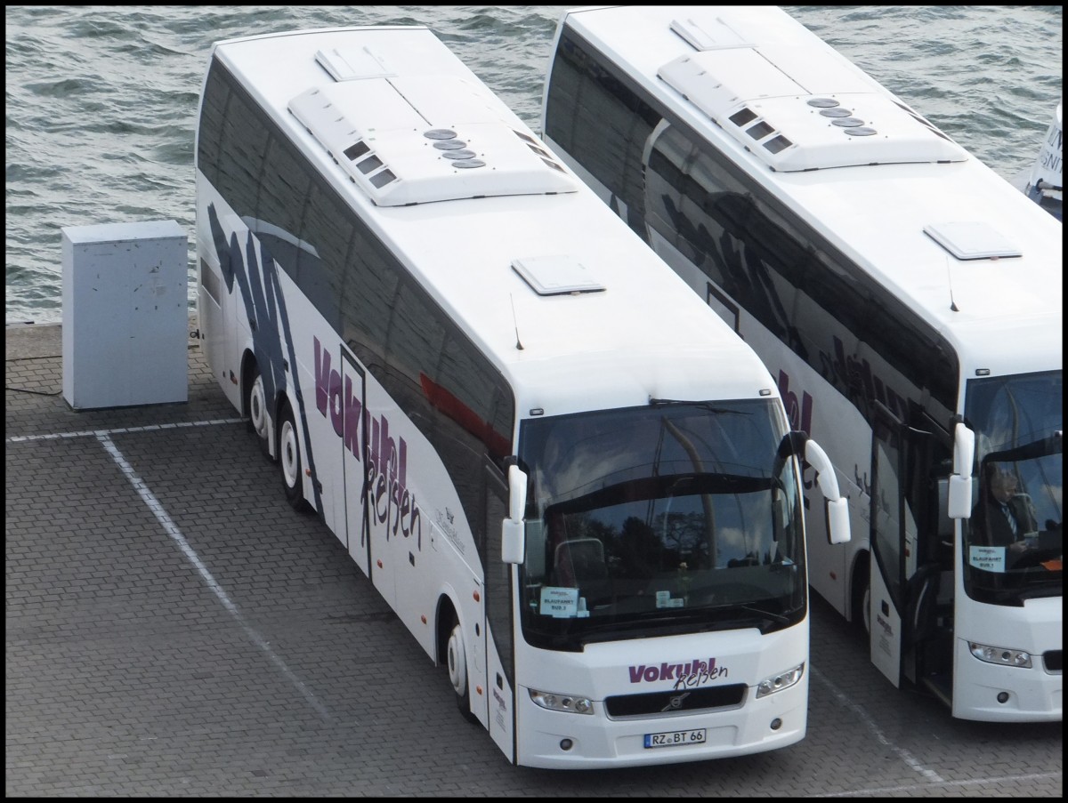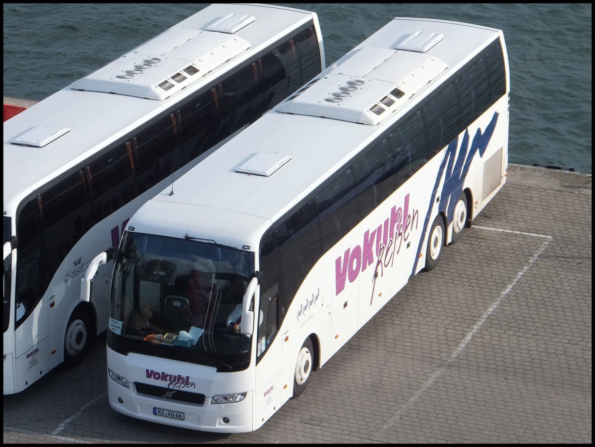 Zwei Volvo 9700 von Vokuhl Reisen aus Deutschland im Stadthafen Sassnitz am 27.10.2013