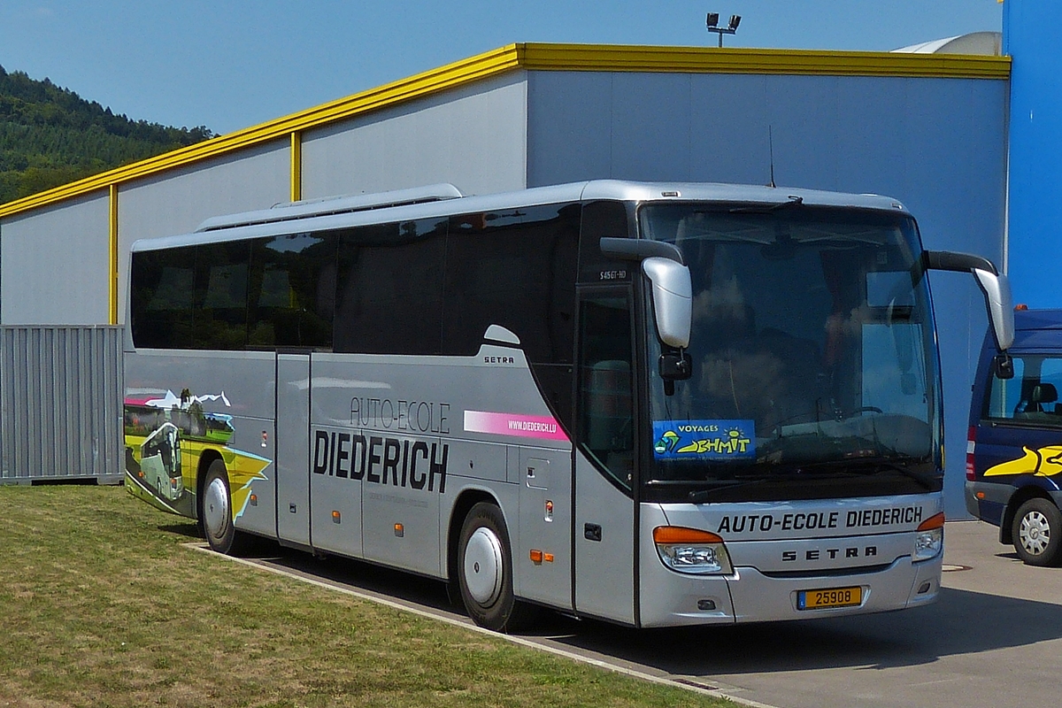 . 25908, Setra S 415 GT-HD wird auch als Fahrschule genützt, aufgenommen über einen Zaun nahe Ettelbrèck am 22.08.2015.