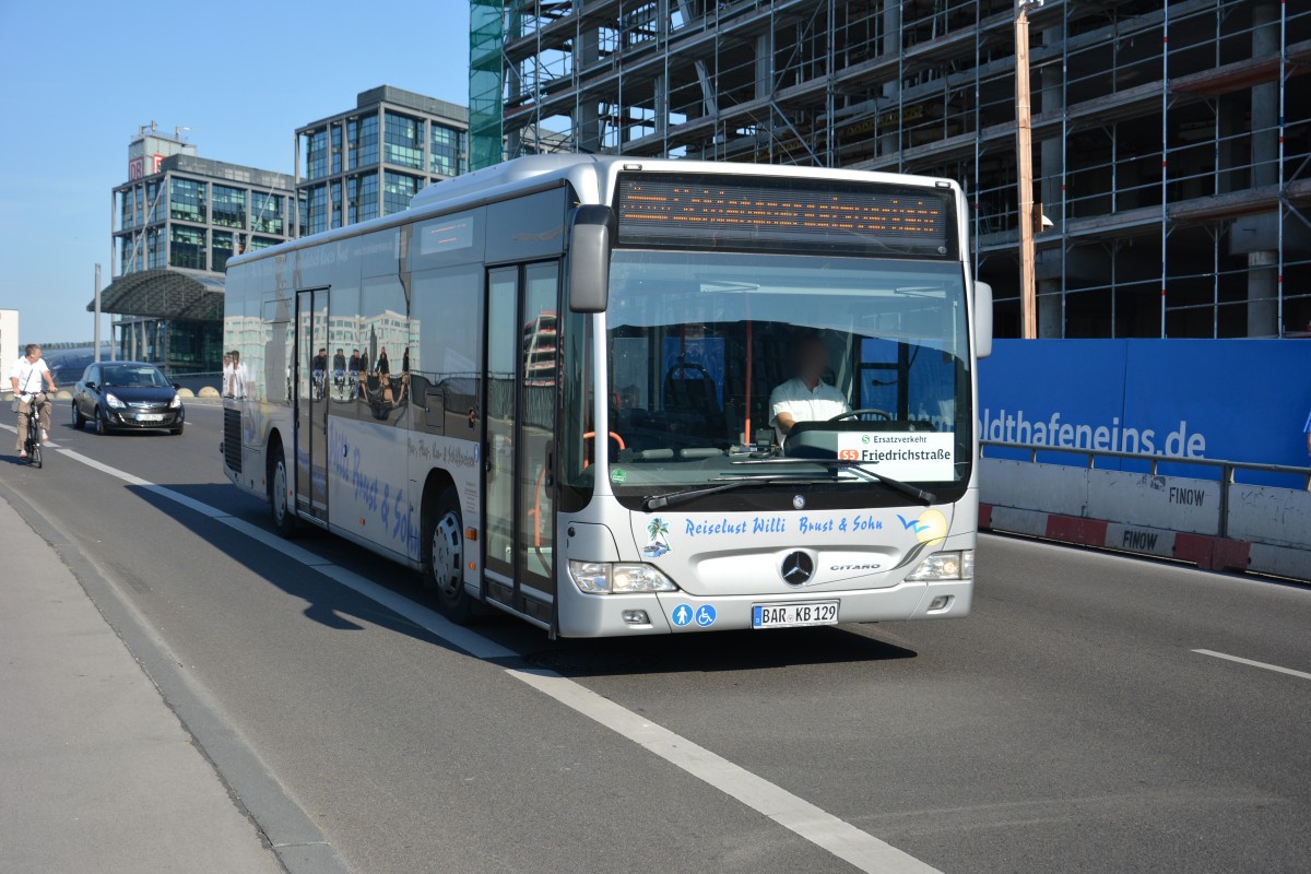 BAR-KB 129 fährt am 18.07.2015 für die S-Bahn Berlin Schienenersatzverkehr. Aufgenommen wurde ein Mercedes Benz Citaro Facelift / Berlin Rahel-Hirsch-Straße.