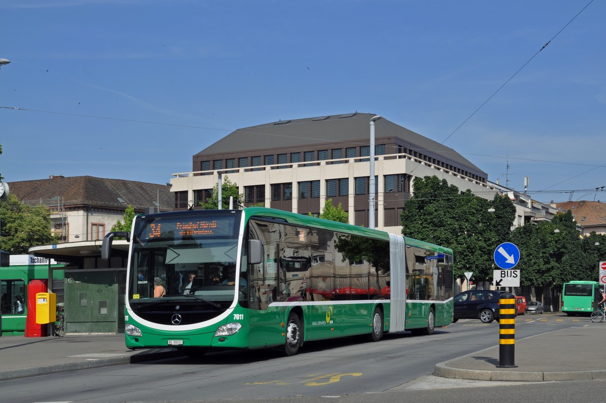 Mercedes Citaro 7011 auf der Linie 34 bedient die Haltestelle am Wettsteinplatz und fährt danach Richtung Haltestelle Rosengartenweg. Die Aufnahme stammt vom 04.07.2015.