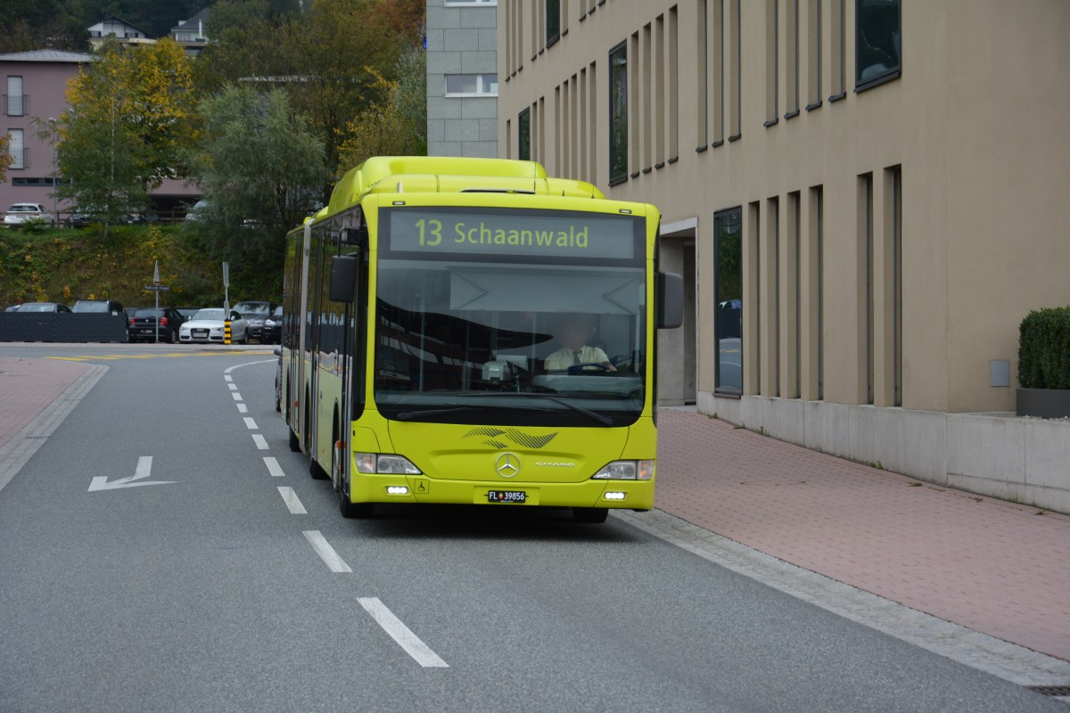 Am 09.10.2015 fährt FL-39856 (Mercedes Benz Citaro G Facelift CNG) auf der Linie 13. Aufgenommen in Schaan, Leichtenstein.