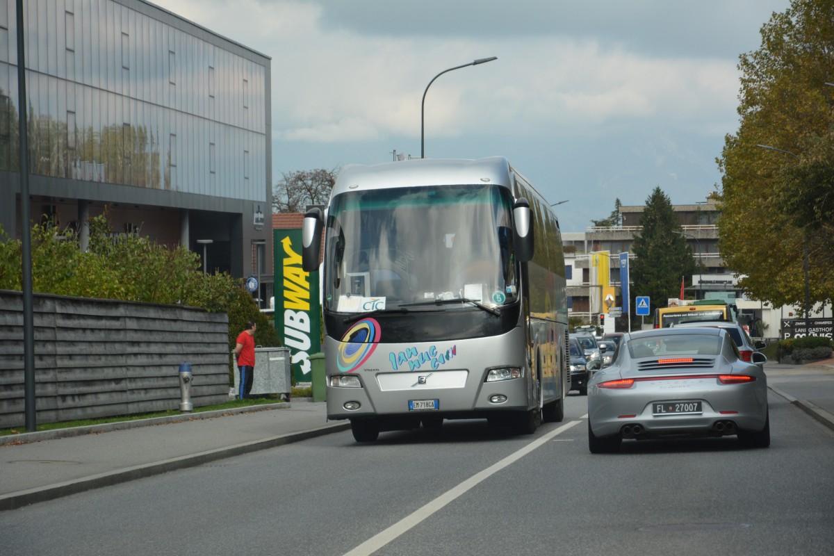 EY-991LD fährt am 09.10.2015 durch Schaan, Liechtenstein. Aufgenommen wurde ein Volvo 9900.