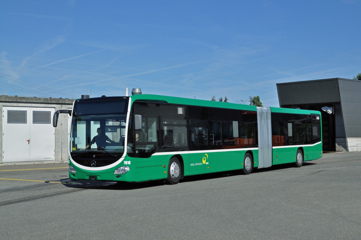 Postauto PU Stuppan Flims, Mercedes-Benz Citaro G (Nr. 4/GR 80411, 2001, ex. PU Eurobus Arbon) am Mo 21. Juli 2014 am Bahnhof Aesch BL. Der Wagen war über mehrere Wochen zusammen mit vielen weiteren Postauto Gelenkbussen (vorwiegend NWCH) im Einsatz als Bahnersatzbus für den S3 Abschnitt Aesch-Laufen.