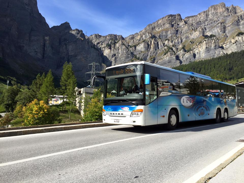 LLB Reisen - Nr. 7/38007 - Setra- Dreiachser beim Bahnhof Leukerbad