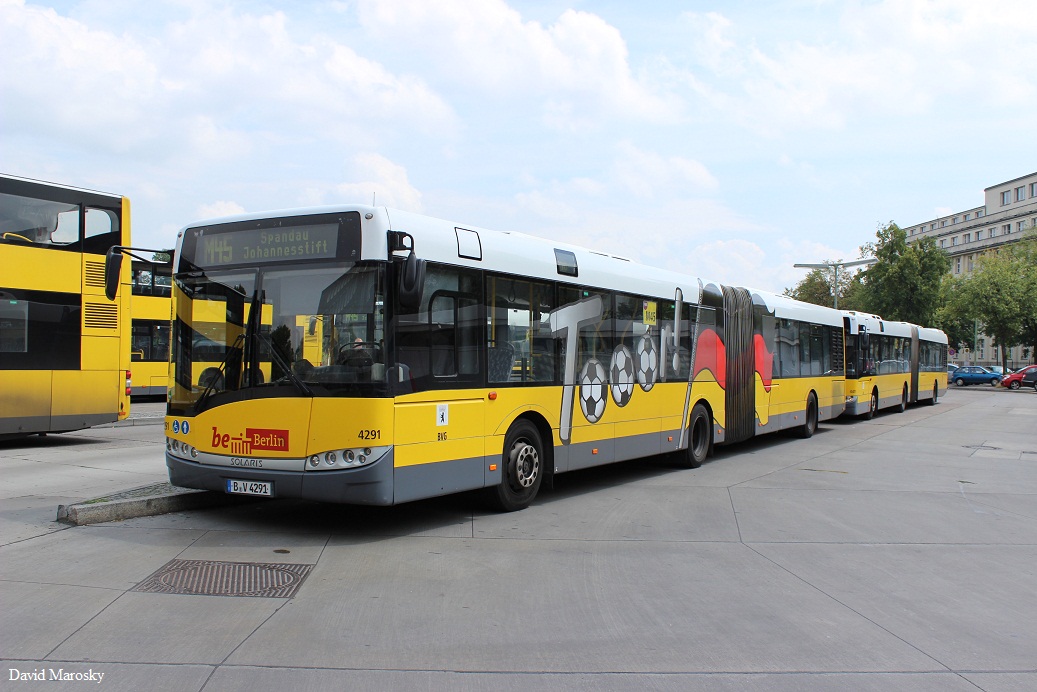 B-V 4301 fährt am 21.08.2014 auf SEV für die U2. Aufgenommen wurde ein Solaris Urbino 18 , Hertzallee Berlin.