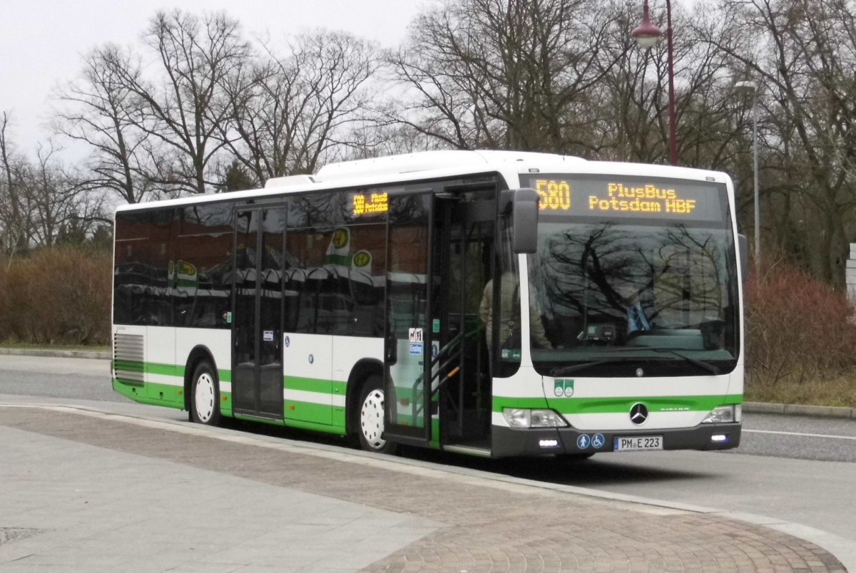 PM-E 254 vom Typ MB O 530 II Ü (jetzt wieder ohne Werbung) auf PlusBus 580 nach Potsdam am Bad Belziger Busbahnhof, 30.12.14