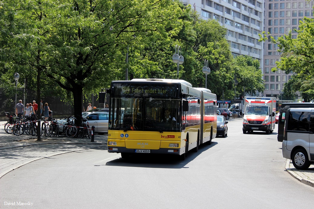 Wagen 4003, ein MAN NG313 der BVG in Berlin am Bahnhof Zoo. 23.07.2014