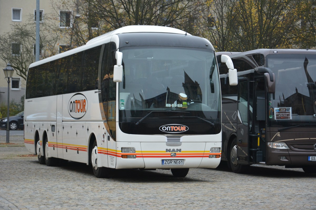 Am 25.10.2014 steht ZGR NE61 (Lion's Coach) am Bassinplatz in Potsdam.
