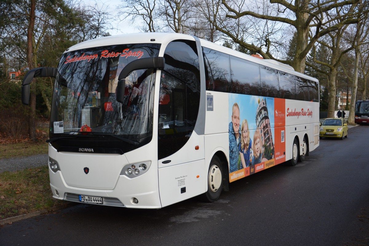 Dieser Scania OmniExpress steht an der Heerstraße in Berlin am 17.01.2015. Kennzeichen : MD-DU 4444.