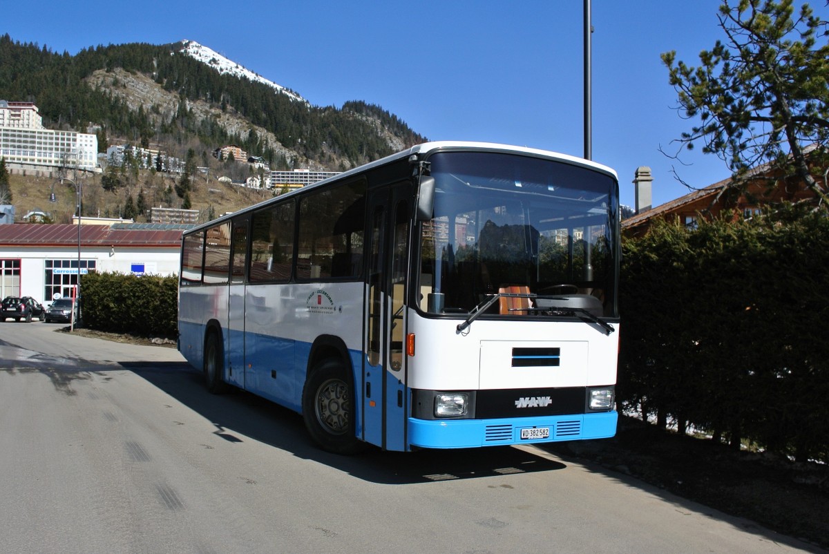 MB 405 N ex. AAGL als Reserve Skibus beim Deopt in Leysin. Daneben steht ein ausgemusterter NAW, 18.03.2015.