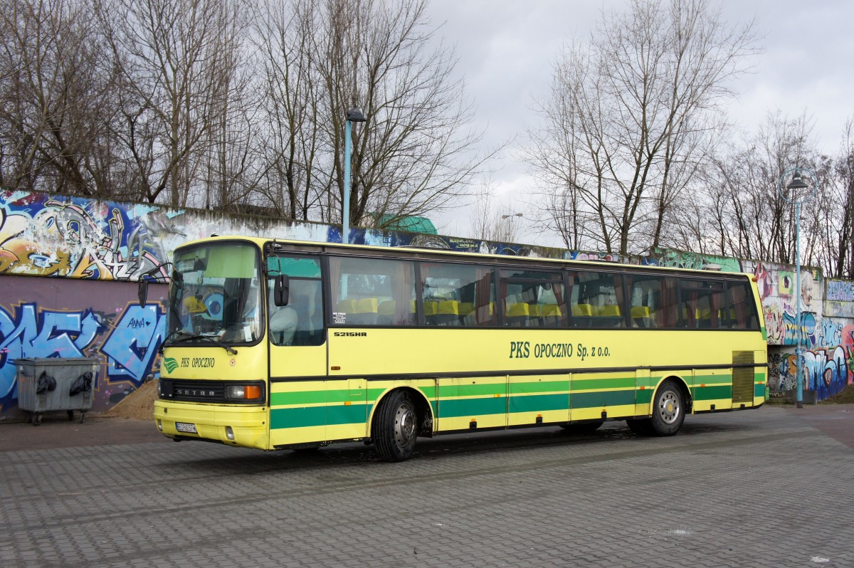 Polen / Lodz: Setra S 215 HR der PKS Opoczno, aufgenommen im März 2015 an der Haltestelle "PKP Łódź - Kaliska" in Lodz.