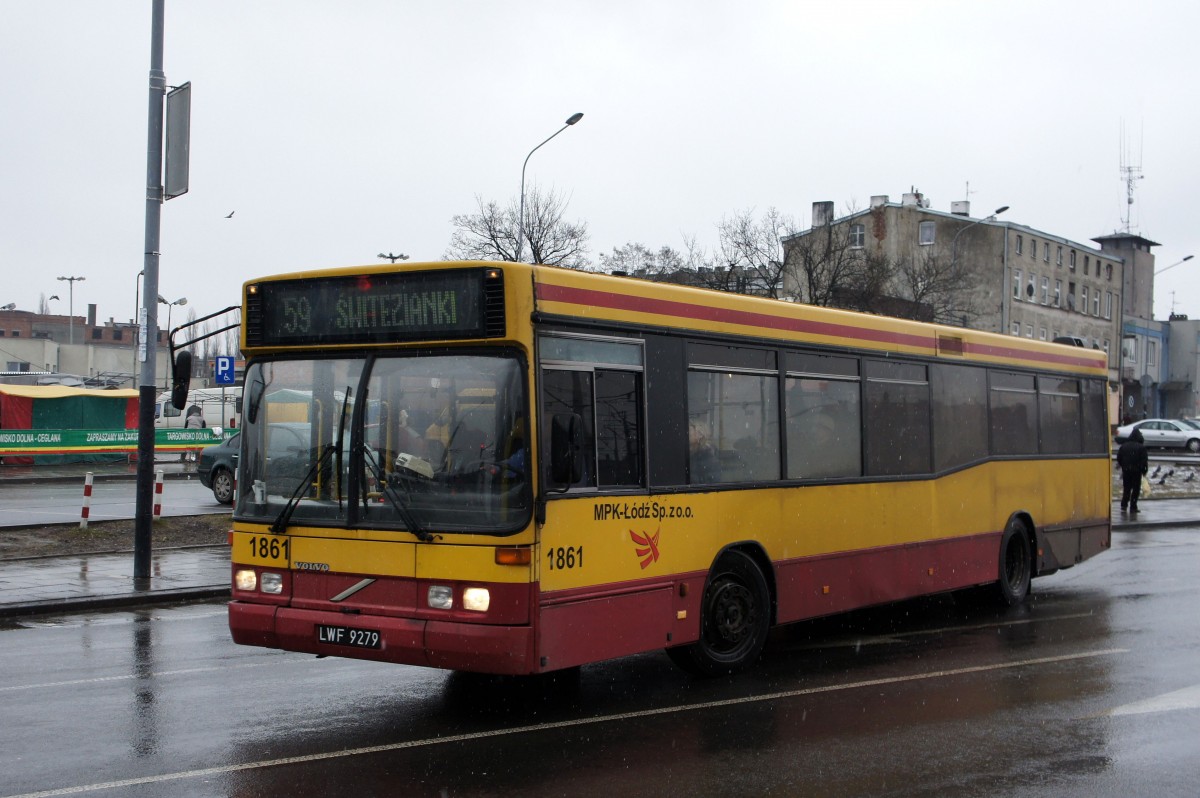 Polen / Stadtbus Lodz: Volvo B10L - Wagen 1861, aufgenommen im März 2015 an der Haltestelle "Zgierska - targowisko Dolna" in Lodz.