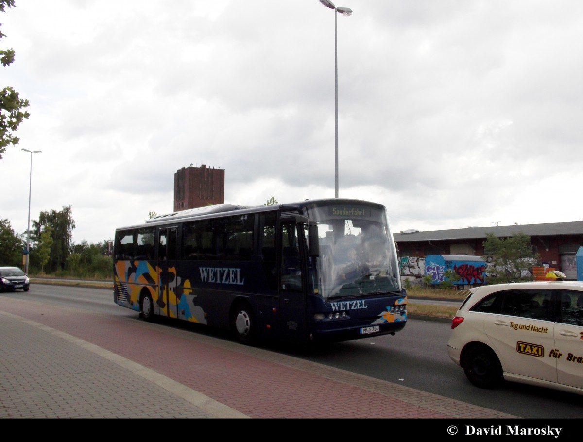 Sommer 2013 der Neoplan N 316 Ü der Firma Wetzel am Brandenburger Güterbahnhof.