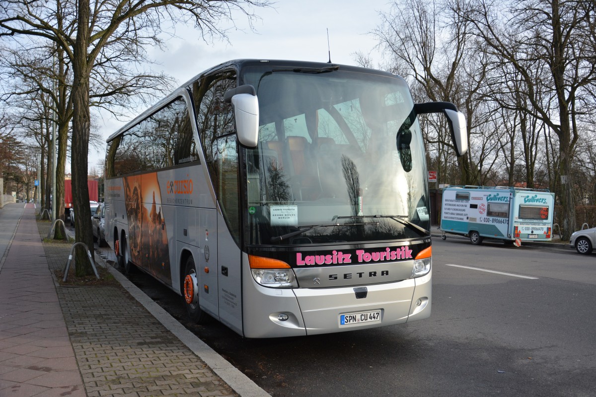 SPN-CU 447 steht am 17.01.2015 an der Olympischen Straße in Berlin. Aufgenommen wurde ein Setra S 416 HDH.