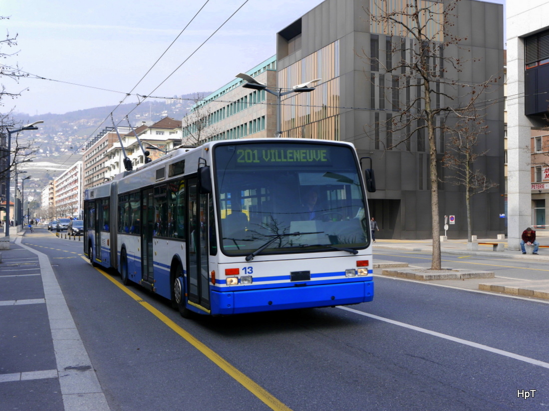VMCV - VanHool Trolleybus Nr.13 unterwegs in der Stadt Vevey am 14.03.2015