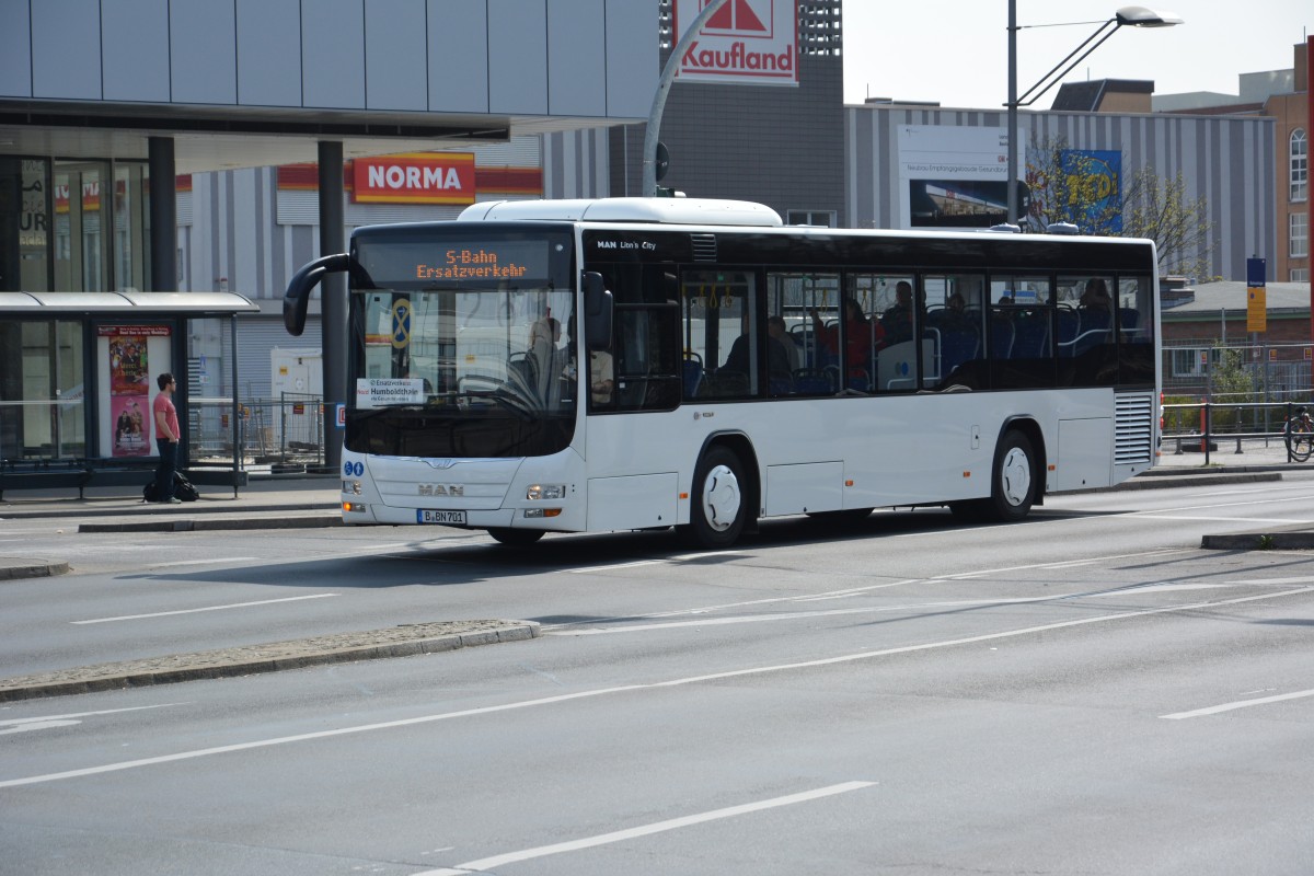 B-BN 701 (MAN Lion's City Low Entry) fährt für die S-Bahn Berlin Schienenersatzverkehr. Aufgenommen am 11.04.2015 / Berlin Gesundbrunnen.