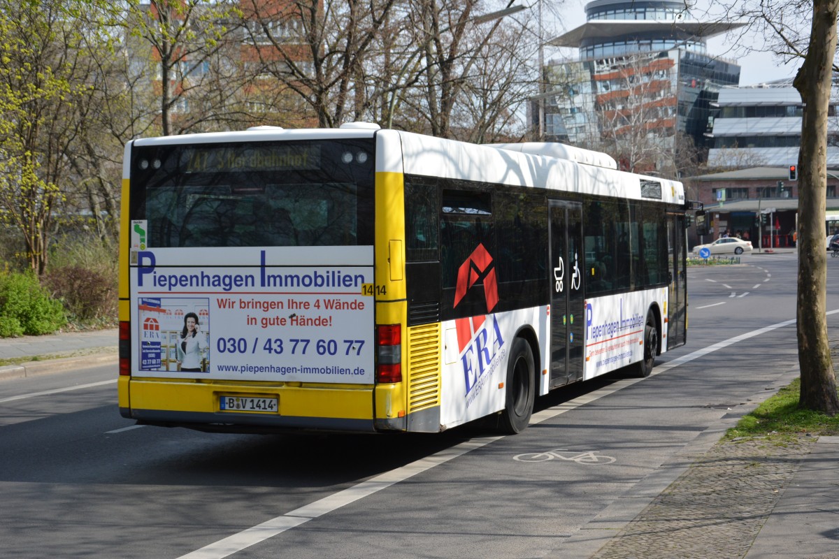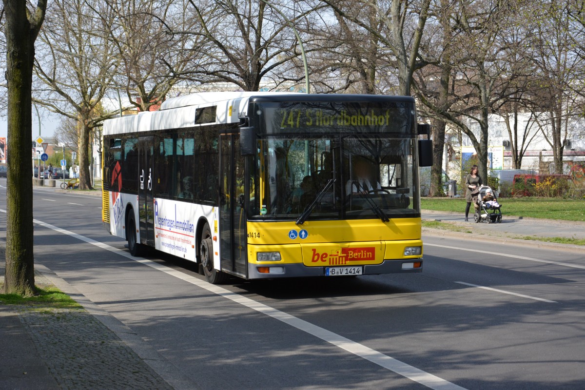B-V 1414 (MAN) fährt am 11.04.2015 auf der Linie 247 zum S-Bahnhof Nordbahnhof. Aufgenommen an der Böttgerstraße.
