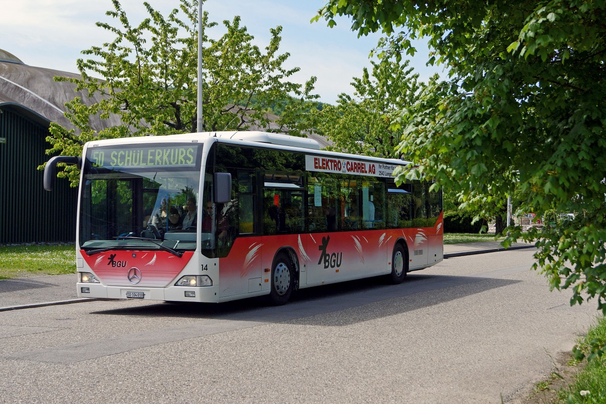 BGU: Der dreiachsige Mercedes Citaro Nr. 15 ehemals BM wurde neu durch den Zweichachser mit der Nummer 14 ersetzt. Per Ende Jahr wird die Strecke 50 für den Schülerverkehr neu ausgeschrieben. Die Aufnahme entstand am 8. Mai 2015 beim Endhalt CIS.