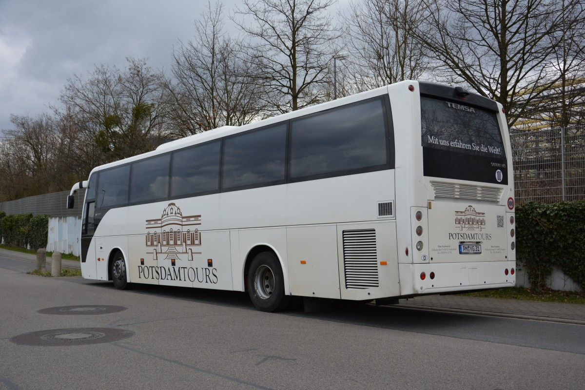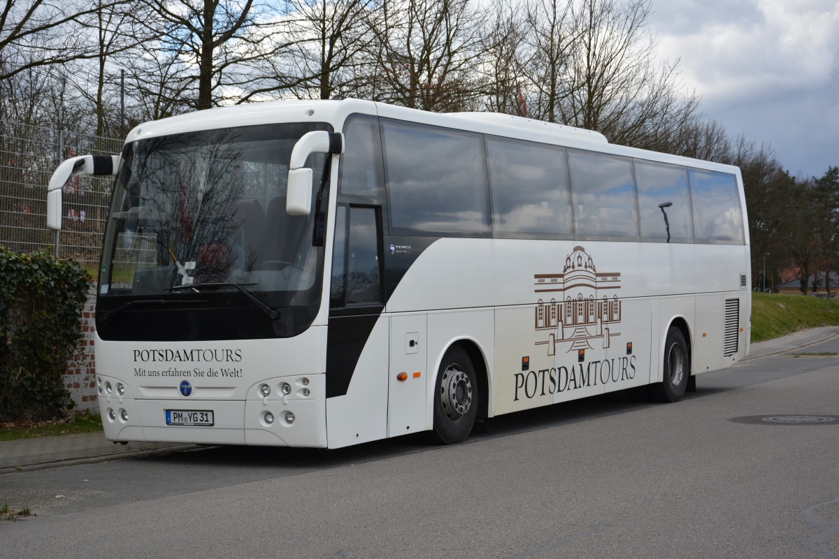 Dieser Temsa Safari HD mit dem Kennzeichen PM-YG 31 steht am 06.04.2015 an der Kieler Straße in Stahnsdorf.