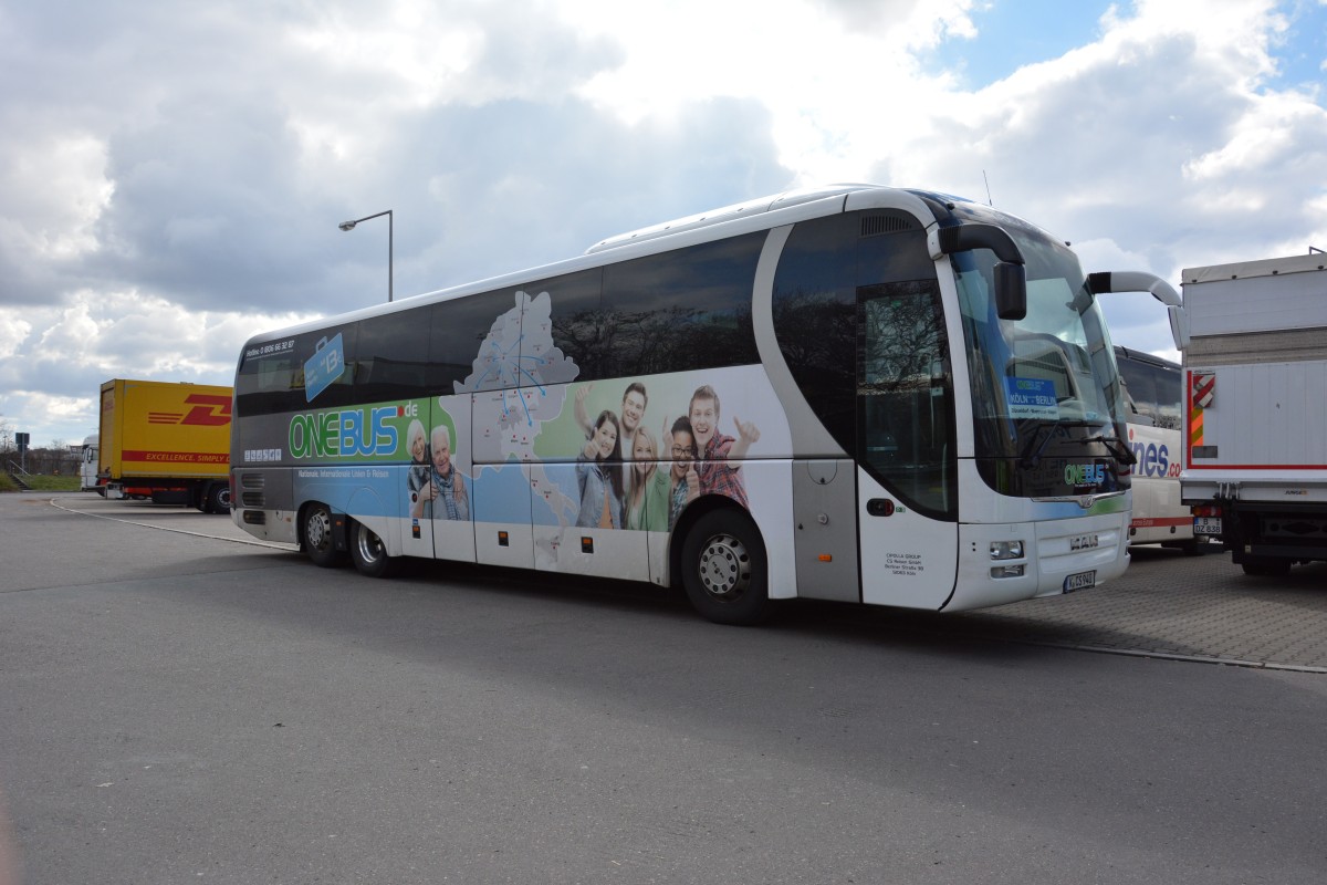 K-CS 940 (MAN Lion's Coach / OneBus) steht am 06.04.2015 auf dem Rastplatz an der A 115 in Berlin.