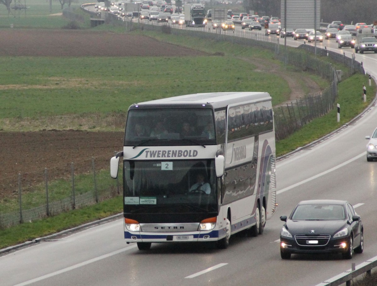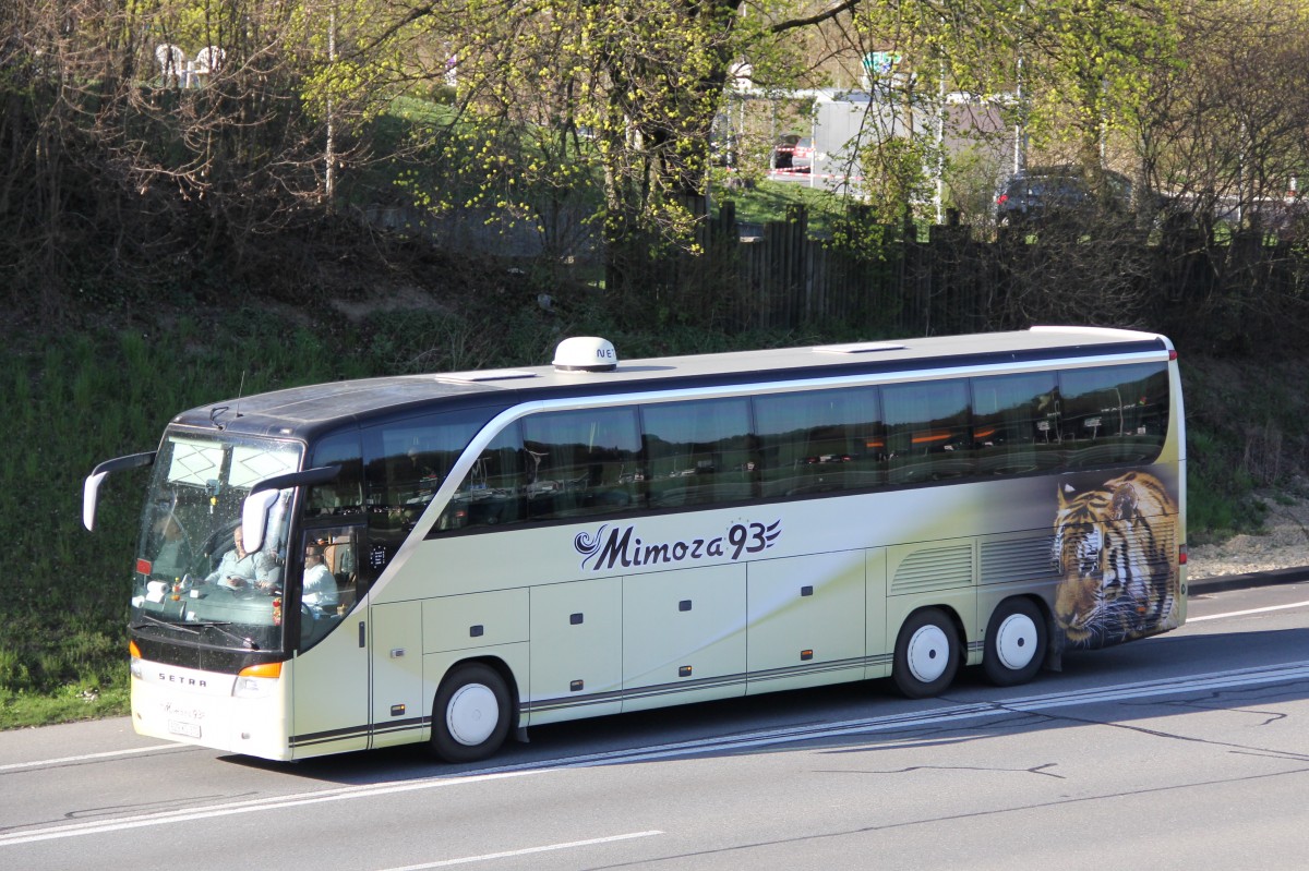 . Setra S 517 Hd legt am Strassenrand nahe dem Flughafen von Luxemburg eine kurze Pause ein. 02.05.2015