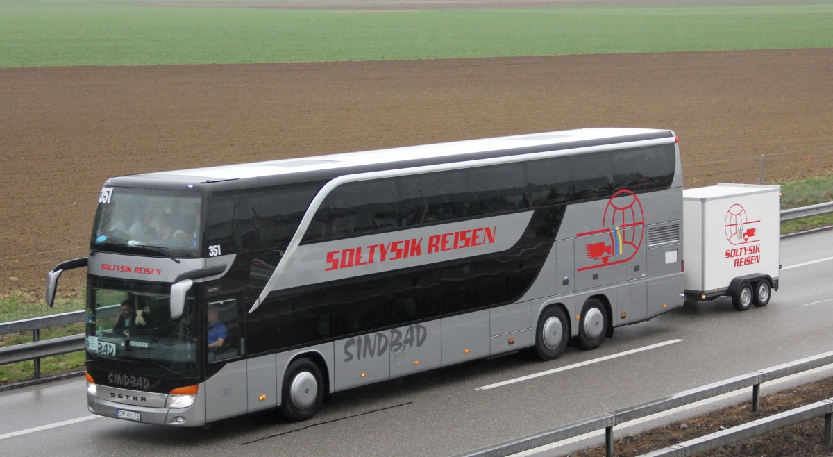 UER-B 516 (Setra S 416 HDH / URB) steht am 06.04.2015 auf dem Rastplatz an der A 115 in Berlin.