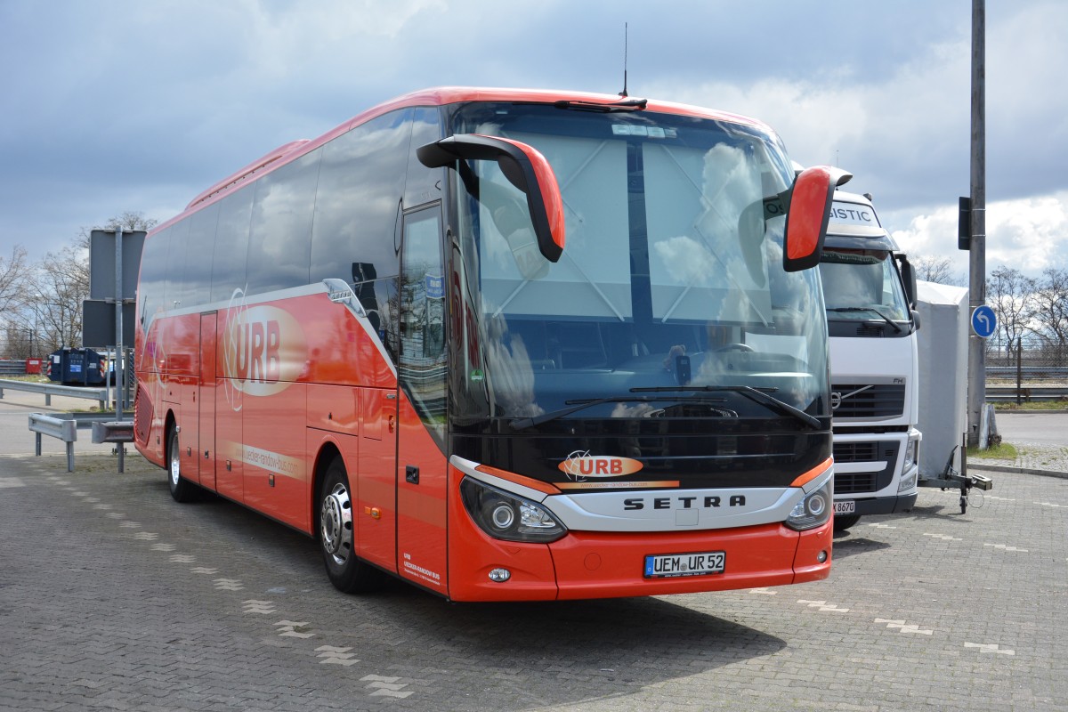 UER-UR 52 (Setra S 516 HD / URB) steht am 06.04.2015 auf dem Rastplatz an der A 115 in Berlin.
