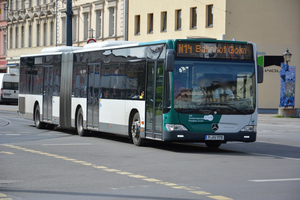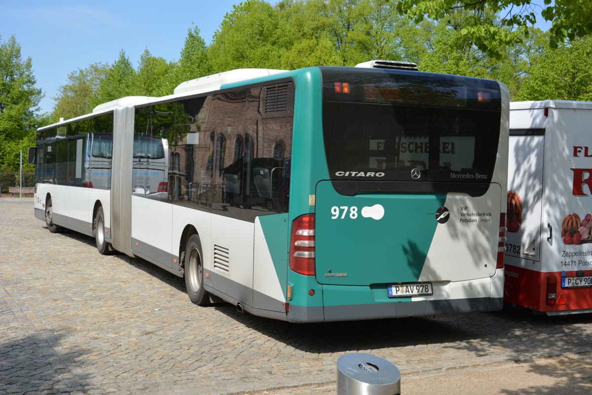Am 03.05.2015 steht P-AV 978 auf dem Bassinplatz in Potsdam. Aufgenommen wurde ein Mercedes Benz Citaro Facelift.