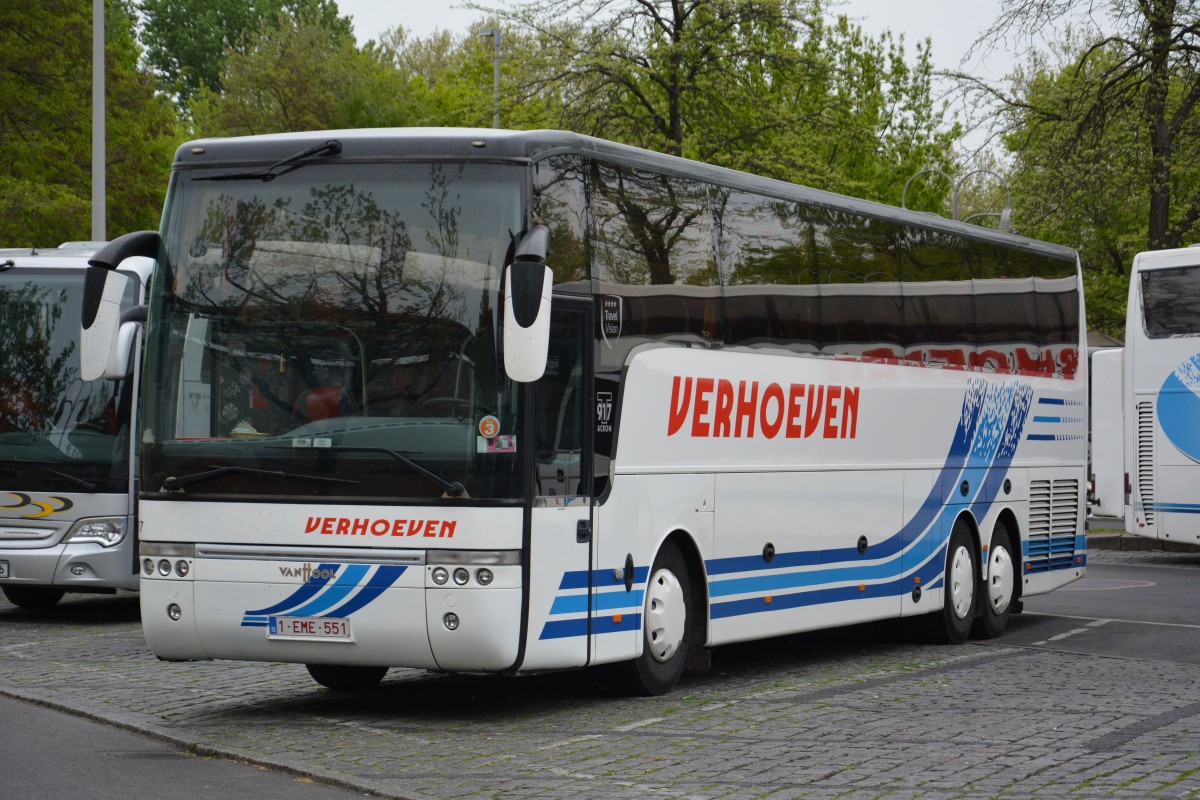 Aus Belgien kommt dieser VanHool 927 Astromega mit dem Kennzeichen PXQ 079. Aufgenommen am Hardenbergplatz in Berlin / 05.05.2015.