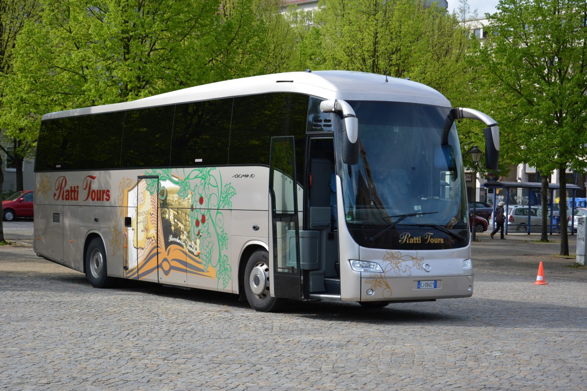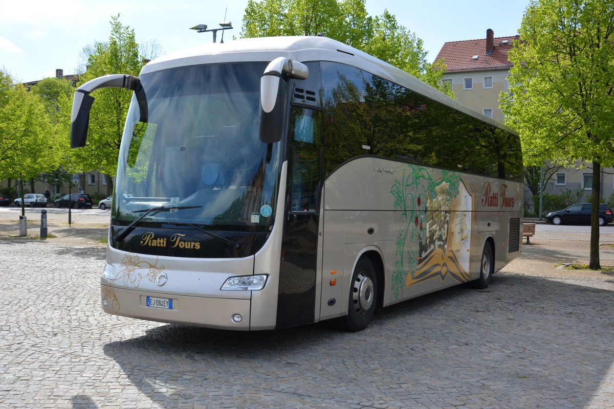 Aus Italien kommt dieser Irisbus Domino (EJ 084EY) und steht am 03.05.2015 auf dem Bassinplatz in Potsdam.