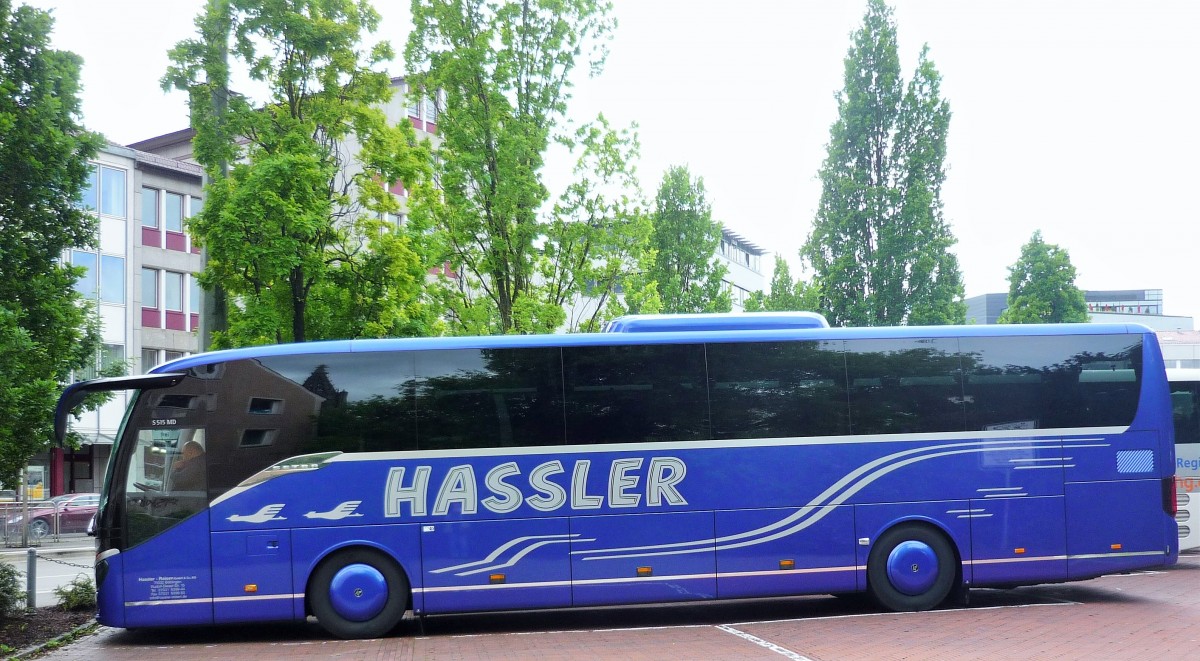 Mercedes Travego von Klute aus Deutschland im Stadthafen Sassnitz am 22.05.2015