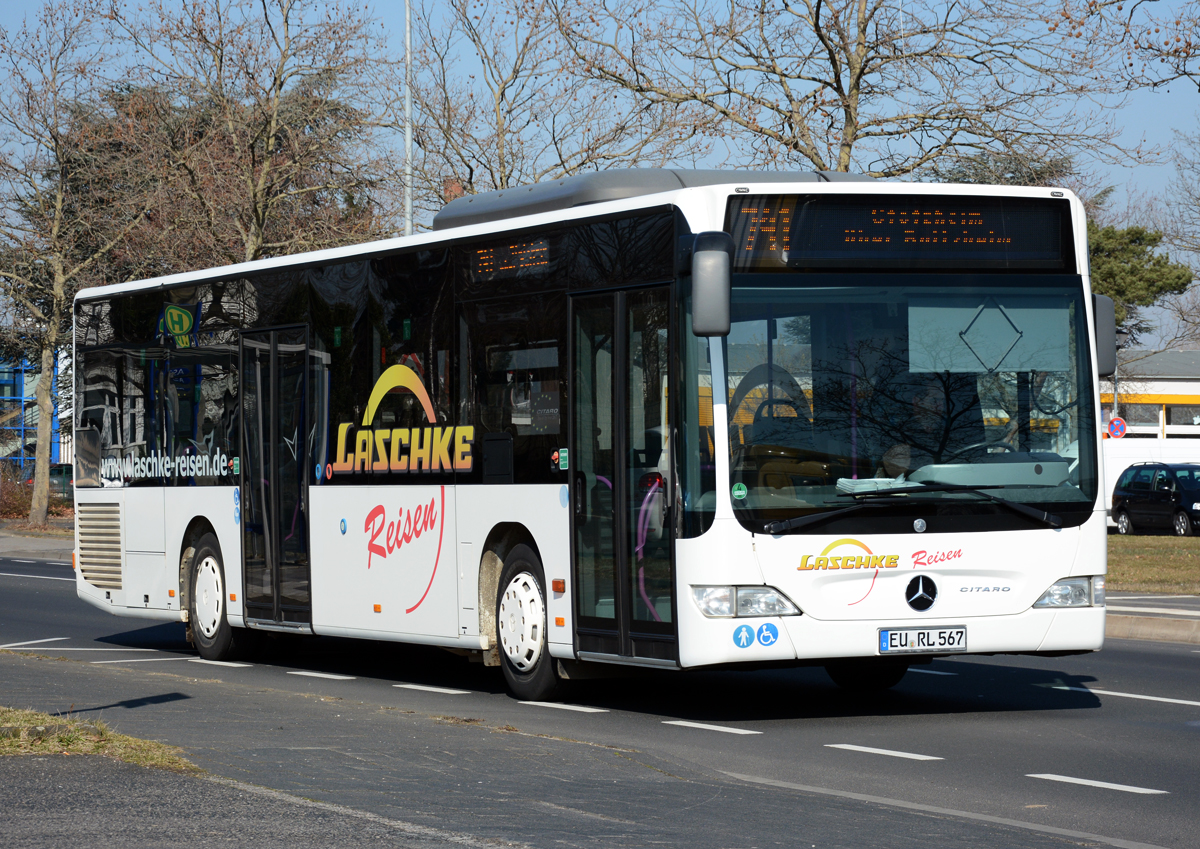 Am 04.05.2015 fährt P-AC 137 (Mercedes Benz Citaro Low Entry) auf der Linie 614 nach Paaren. Aufgenommen am Platz der Einheit in Potsdam.
