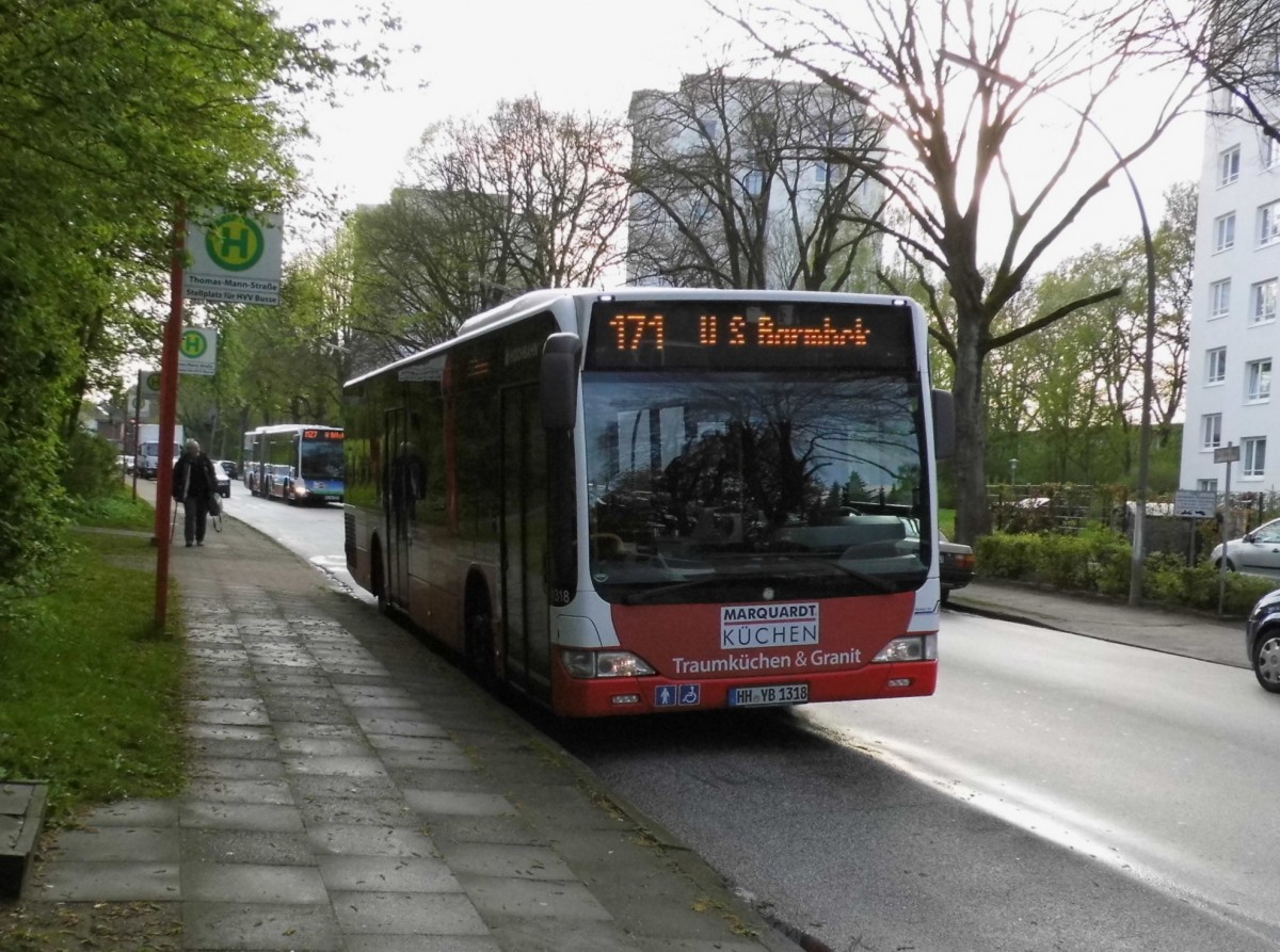 MB Citaro Facelift HHA 1318 auf Linie 171 in Bramfeld, Thomas-Mann-Str. am 30.4.15