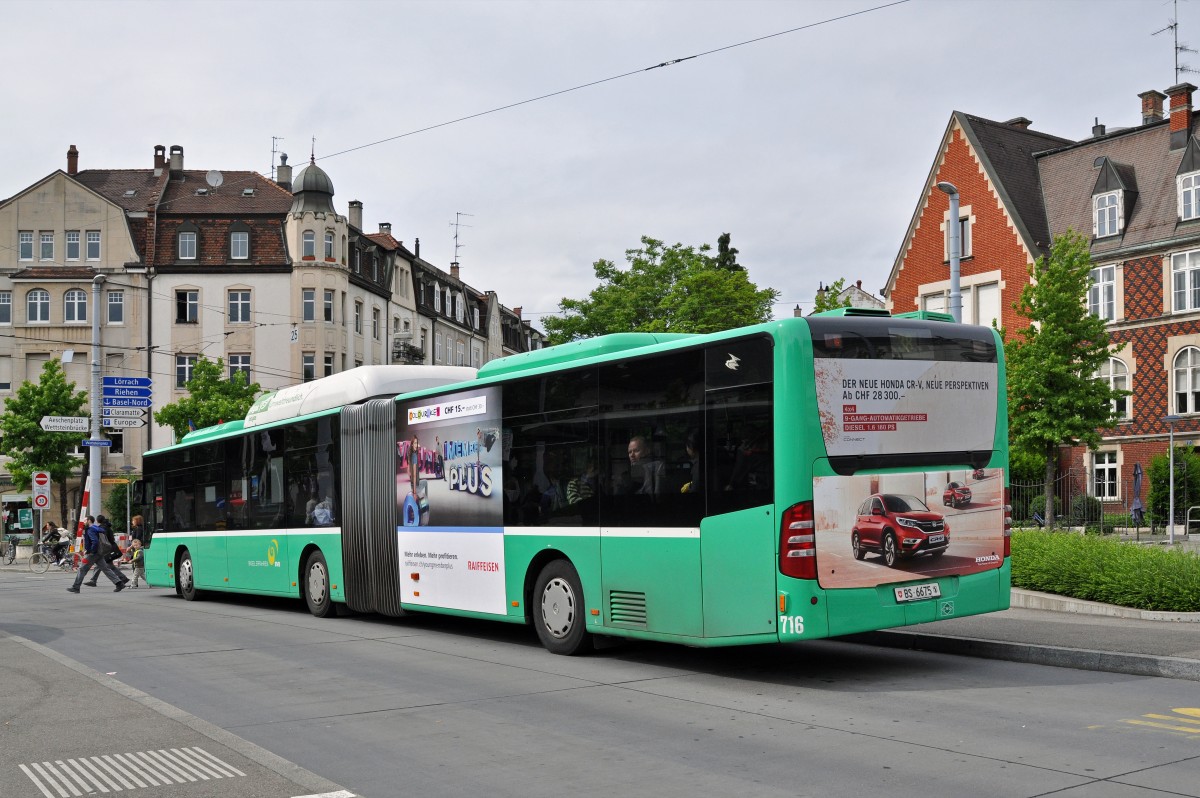 Mercedes Citaro 716 auf der Linie 38 bedient die Haltestelle am Wettsteinplatz. Die Aufnahme stammt vom 19.05.2015.