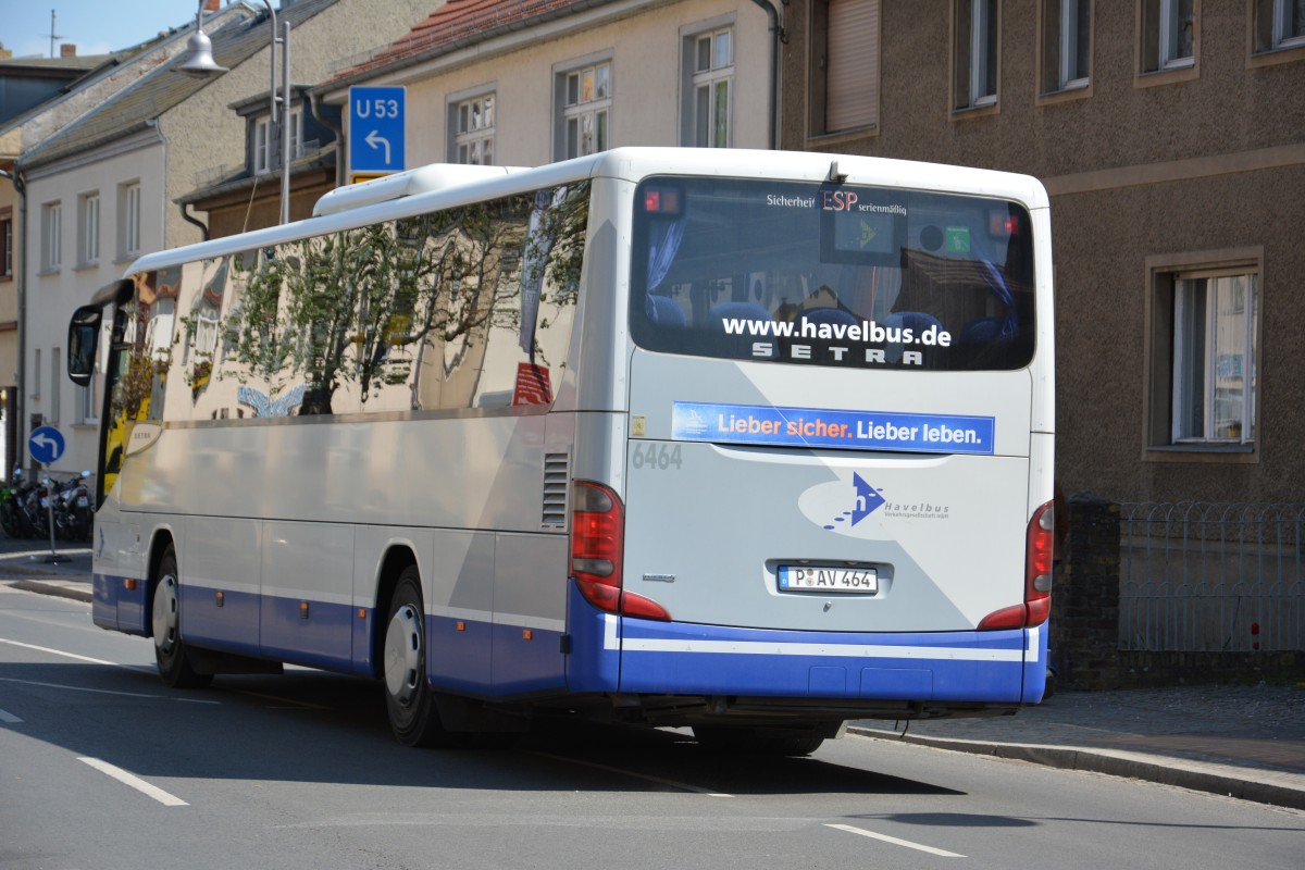 P-AV 464 fährt am 03.05.2015 durch Werder Havel. Aufgenommen wurde ein Setra S 415 UL / Werder Havel Kölner Straße.