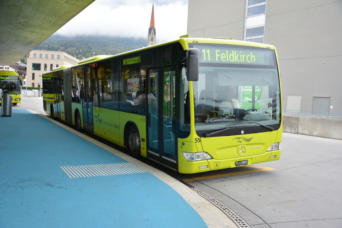 Am 08.10.2015 fährt FL-39855 (Mercedes Benz Citaro Facelift G) auf der Linie 11. Aufgenommen am Busbahnhof Schaan, Liechtenstein.