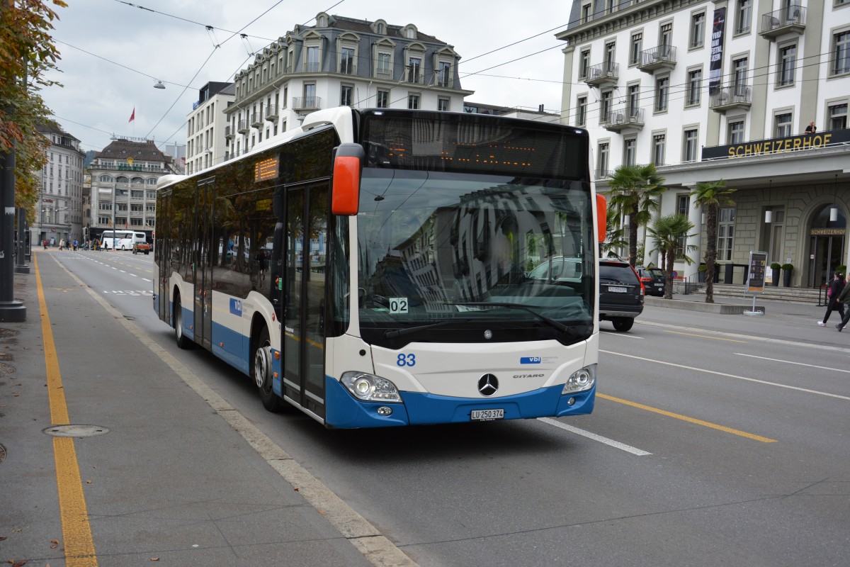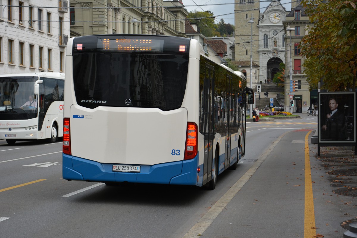 LU-250374 (Mercedes Benz Citaro der 2. Generation) fährt am 08.10.2015 durch Luzern. Aufgenommen in Luzern, Schweizerhofquai.