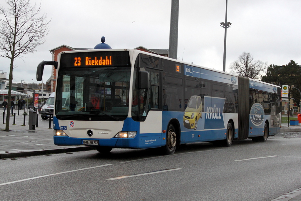 Mercedes-Benz O 530 I(Citaro)als Linie 23 von Rostock Hbf/Nord nach Rostock-Riekdahl bei der Ausfahrt in der Haltestelle Rostock Hbf/Nord.20.11.2015