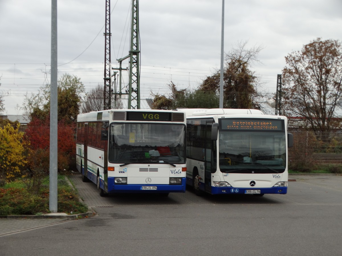 VGG Mercedes Benz O407 und Citaro C1 Facelift Ü am 14.11.15 in Weinheim über den Zaun fotografiert