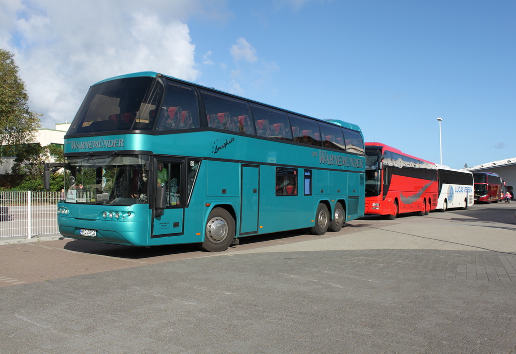 Neoplan Loungliner stand am 26.09.2015 vor dem Warnemünder Cruise Center