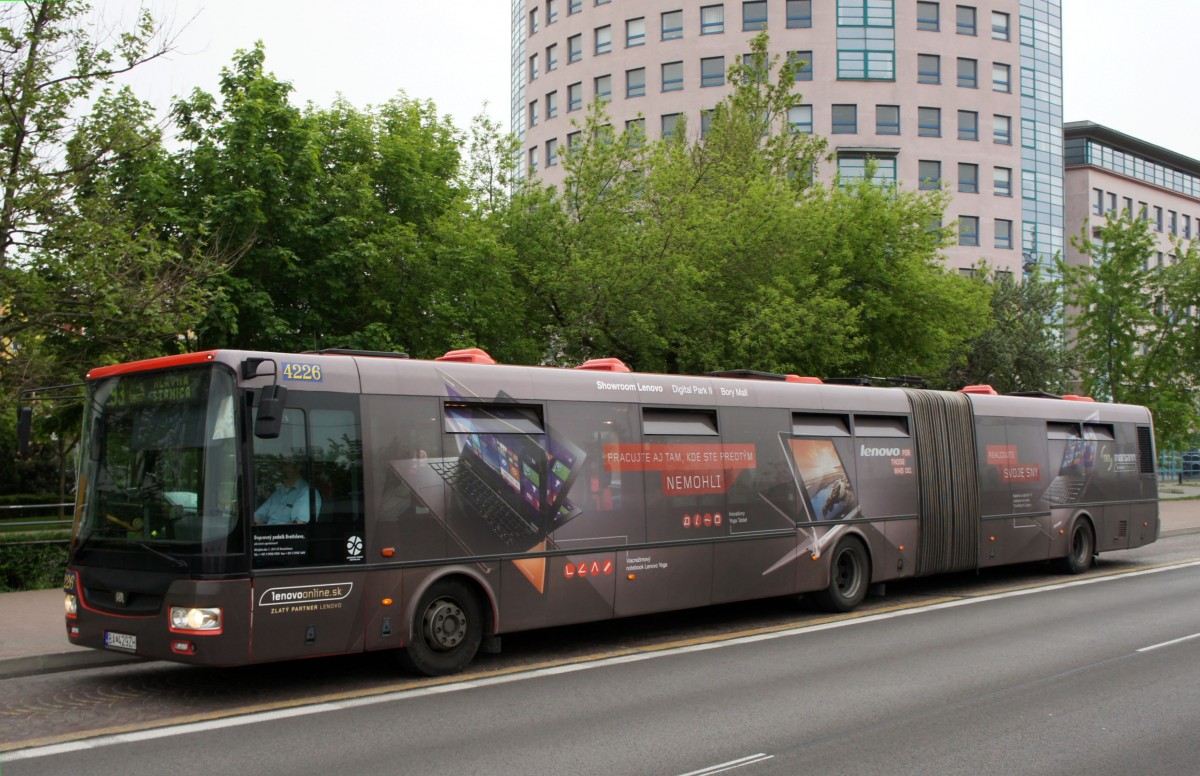 Slowakei / Stadtbus Bratislava: SOR CITY NB 18 - Wagen 4226, aufgenommen im Mai 2015 an der Haltestelle "ŽST Petržalka" in Bratislava.