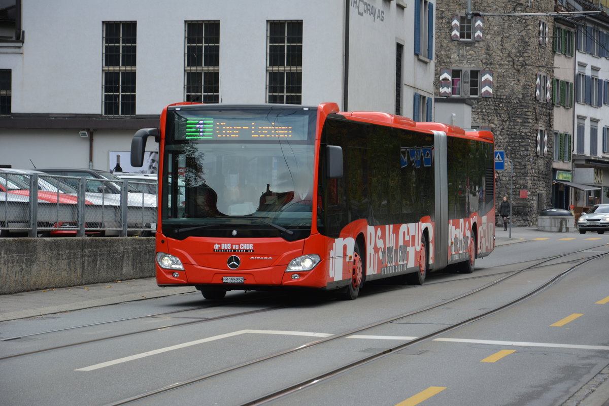 Chur Bus - Mercedes Citaro GR 155856 unterwegs vor dem Bahnhof in Chur am 26.03.2016