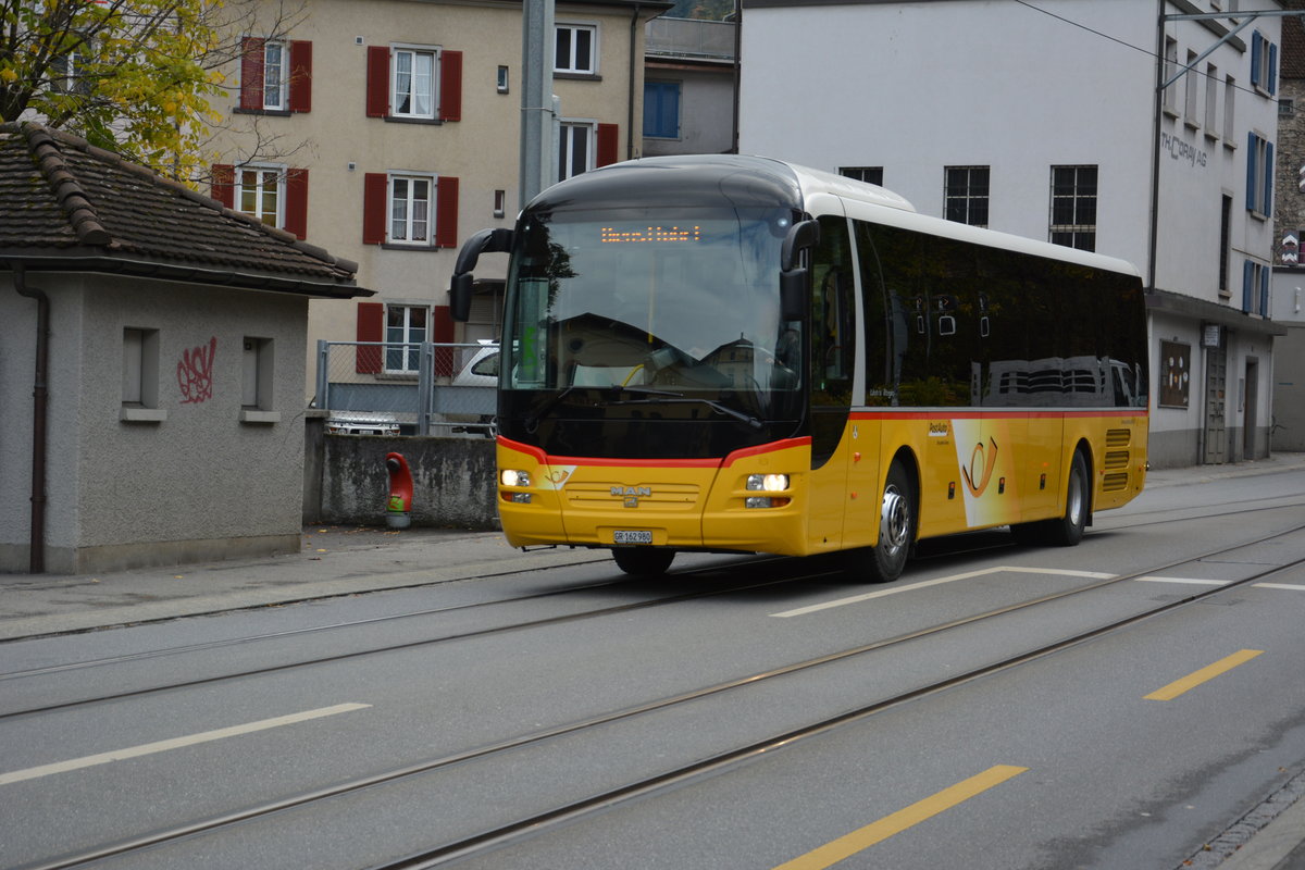 Am 16.10.2015 fährt GR-162980 auf Dienstfahrt durch Chur. Aufgenommen wurde ein MAN Lion's Regio.