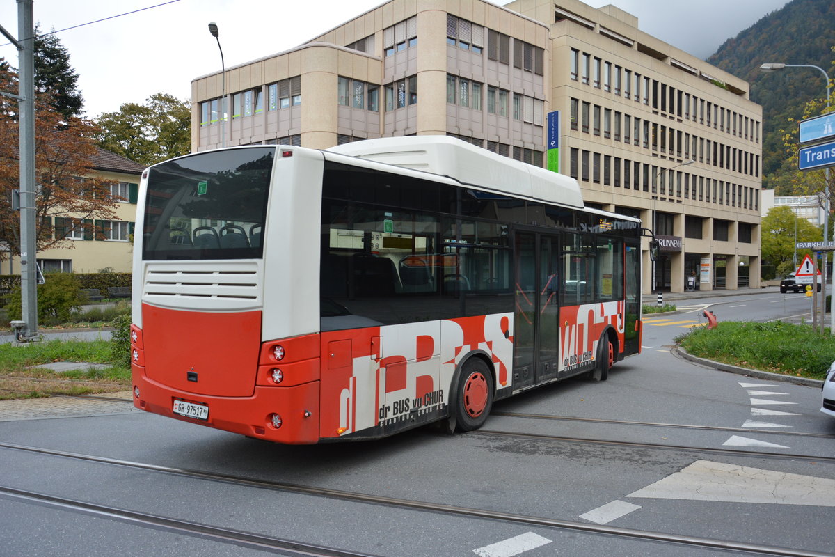 Am 16.10.2015 fährt GR-97517 durch Chur. Aufgenommen wurde ein Gépébus Oréos 4X.