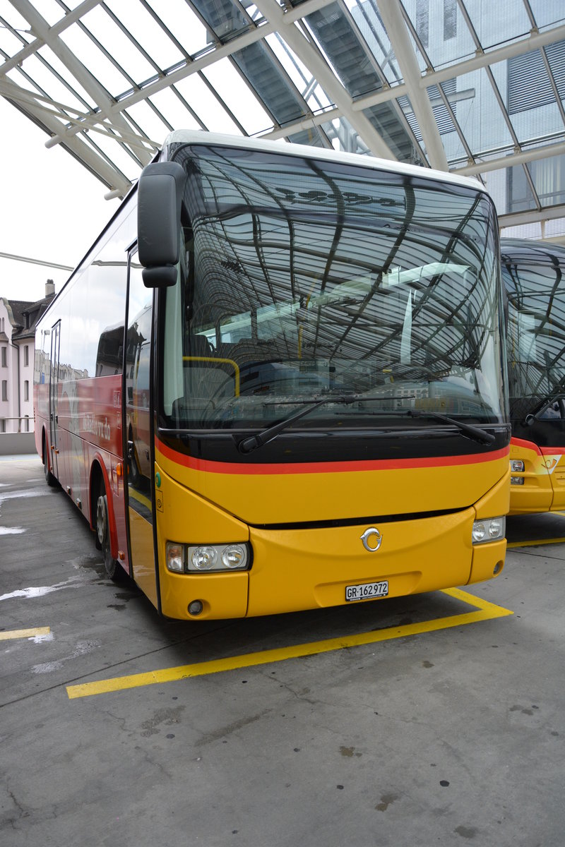 Postauto - Irisbus Crossway GR 162972 in der Postautohalle über dem Bahnhof Chur am 26.03.2016