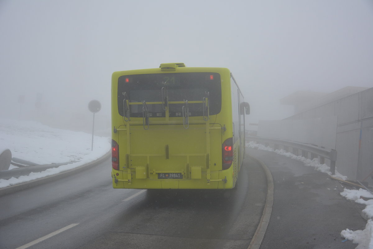 FL-39841 fährt am 16.10.2015 auf der Linie 21 nach Malbun. Aufgenommen wurde ein Setra S 415 NF / Malbunstrasse Liechtenstein.